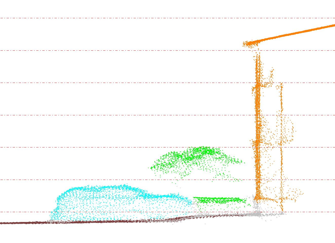 | Ground segmented point cloud delivered as a separate .las file. All points in the point cloud classified in 6 classes: Ground, Non-ground, Buildings, Cars, Vegetation, and Poles. All points within a feature are assigned to their designated class. |