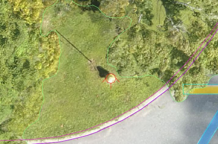 | Single polyline labeled at the center of fence. We interpolate through obstructions over a short distance (i.e. under Vegetation) |