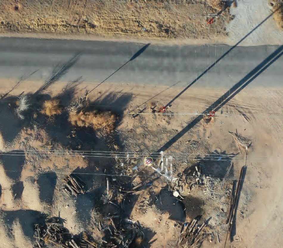 | Pole-supported distribution level overhead power utility wires. For transmission lines, see Catalog Number 049. |