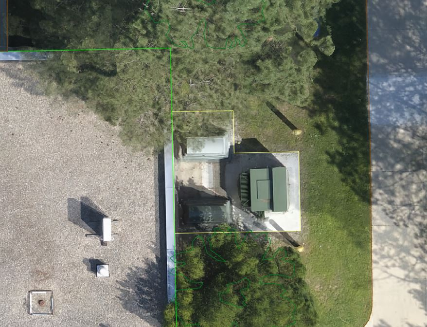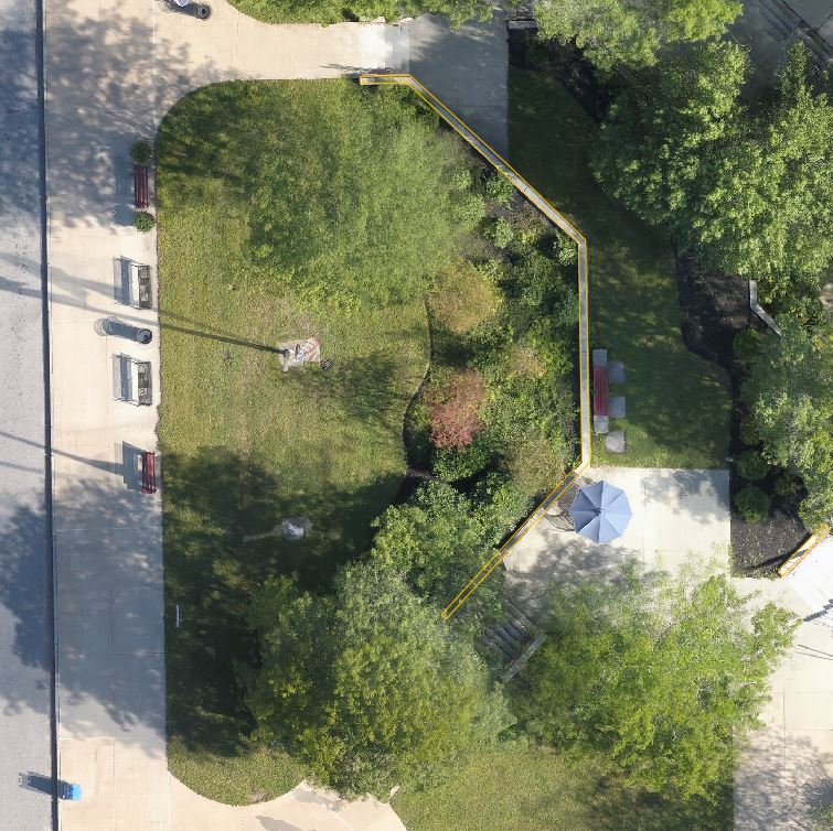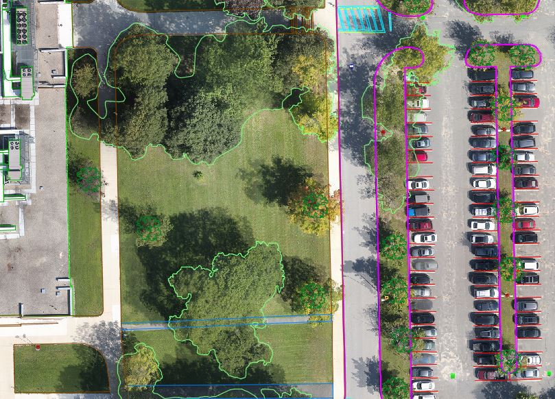 | Single Trees: Block placed at the apparent center of the canopy. Tree Lines: Closed polyline labeled at the outside edge of the vegetation canopy (edge of leaves or branches). Bushes: Block placed at the apparent center of the canopy. Shrub Lines: Closed polyline labeled at the outside edge of the vegetation canopy (edge of leaves or branches). Landscape Areas: Closed polyline labeled at the outside edge of the landscape area as determined by surface material. Where there is no defined edge, the line will follow where the surface material is distinguishable. |
