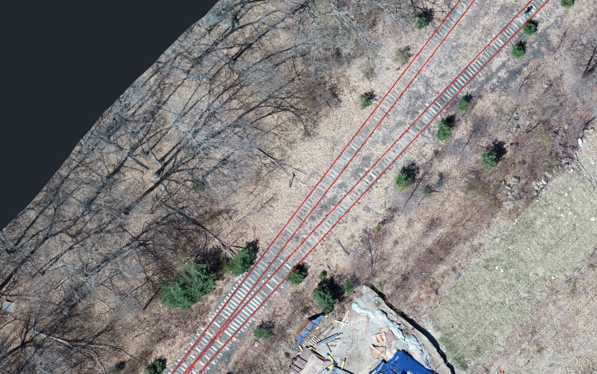| Single polyline labeled at the center of each rail. For 3D (top of rail) approximate elevation/z-value added for each node along the polyline. We interpolate through obstructions over a short distance (i.e. under Vegetation) |