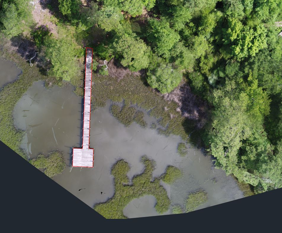 How it’s drafted? | Closed polyline labeled at the outside edge of the dock as determined by surface material. |