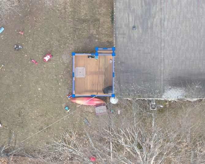 How it’s drafted? | Closed polyline labeled at the outside edge of the deck as determined by surface material. |
