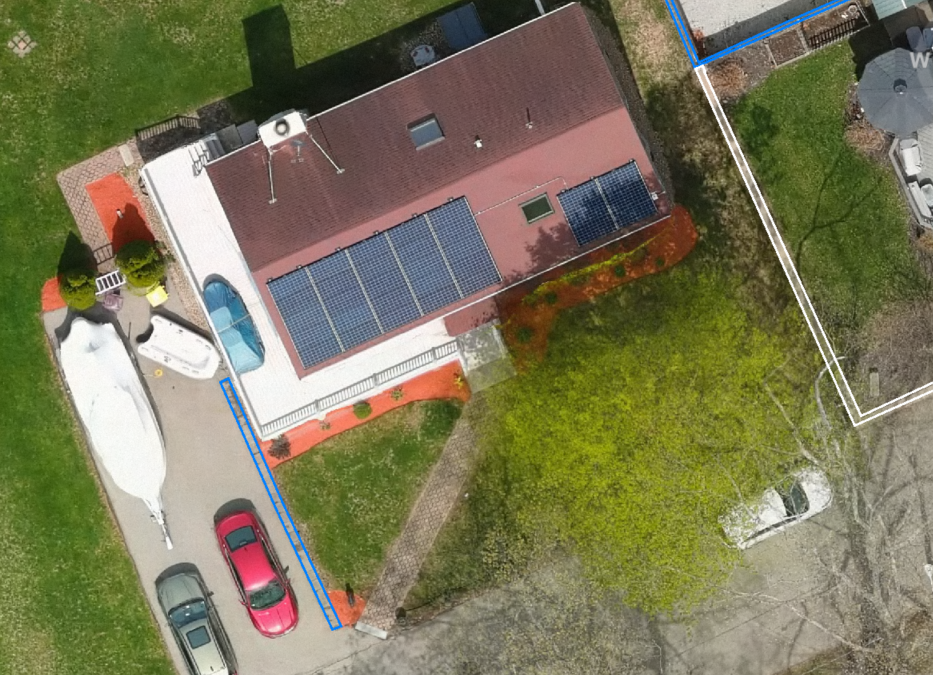 | Closed polyline labeled at the outside edge of the concrete as determined by surface material. We interpolate through obstructions over a short distance (i.e. under Vegetation) |